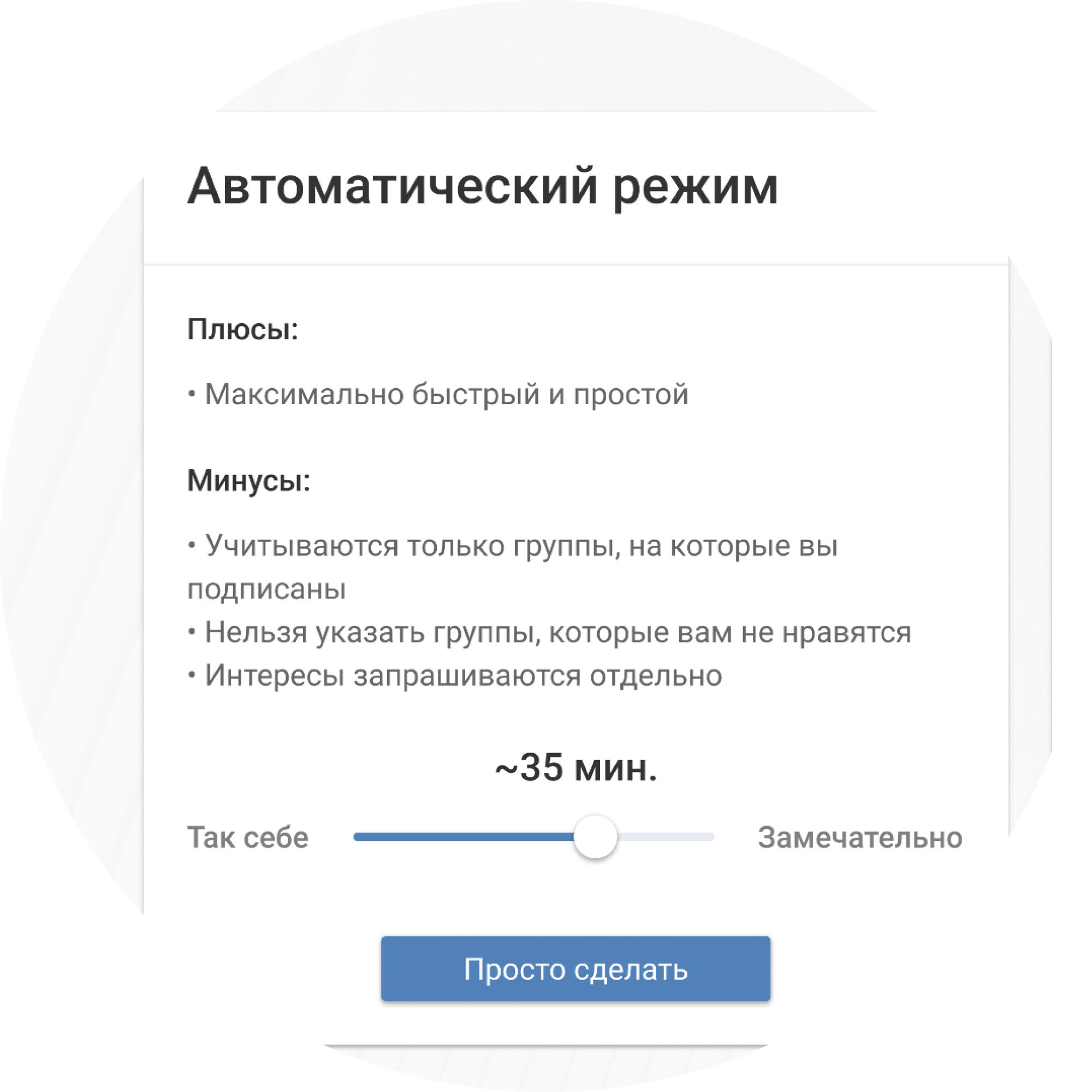 Формируется на основании анализа желаемых и нежелаемых подписок, совпадающие интересы тоже учитываются