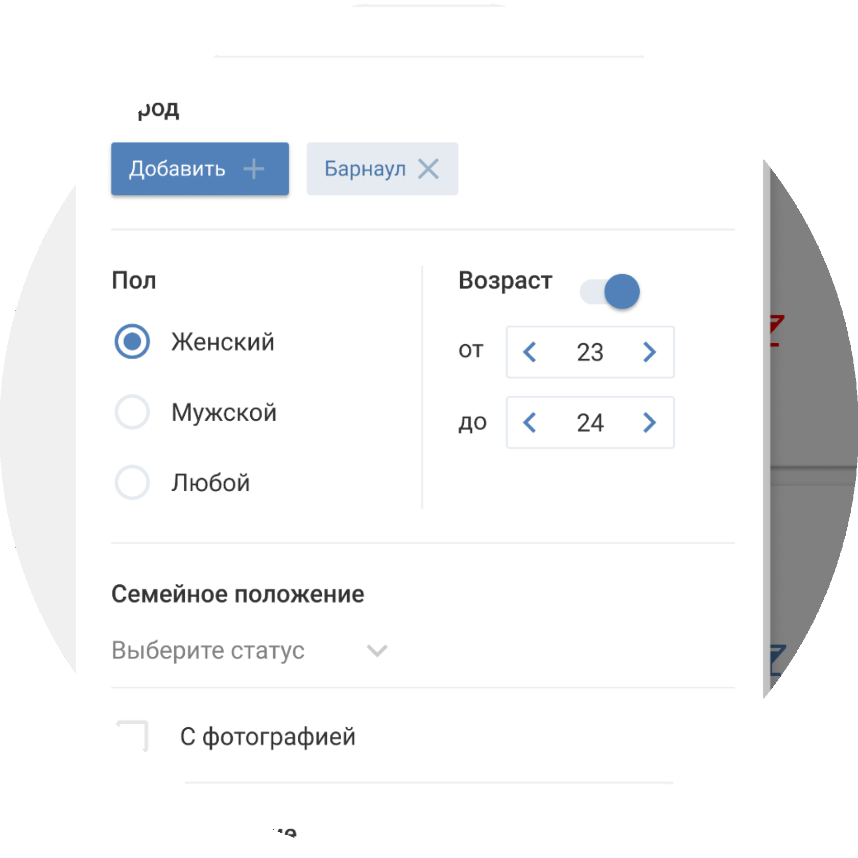 Это синие или красные значки семейного положения, мировоззрения, главного в жизни и людях, отношения к алкоголю и курению.